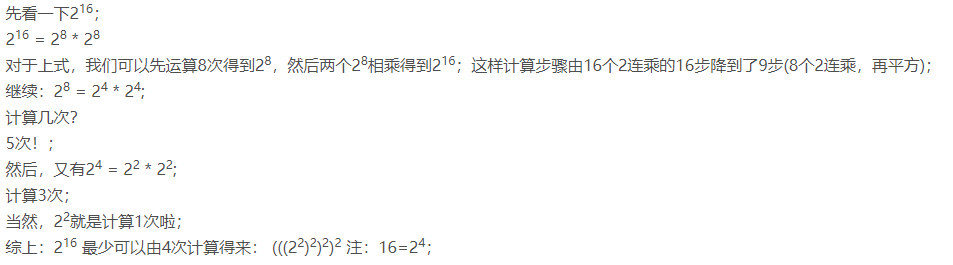 //非递归快速幂int qpow(int a, int n){    int ans = 1;    while(n){        if(n&1)        //如果n的当前末位为1            ans *= a;  //ans乘上当前的a        a *= a;        //a自乘        n >>= 1;       //n往右移一位    }    return ans;}
